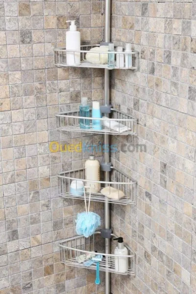 قم بإنشاء مساحة تخزين إضافية في الدش أو حوض الاستحمام باستخدام رف زاوية مفيد من Paloma Tension. لا توجد أجهزة لل