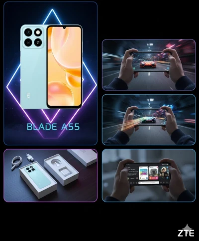 هاتف ZTE Blade A55 جديد في العلبة (Cartonné)، يتميز بأداء قوي وشاشة كبيرة وسلسة. ✅ المميزات التقنية: التخزين: 128 جي