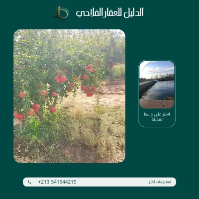 السلام عليكم و رحمة الله أرض فلاحية للبيع مساحتها 105 هكتار تقع على حافة الطريق تربتها خصبة تحتوي على حضي�