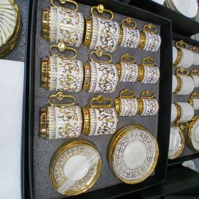 Service À Caffè Afghani Zer2 فيه 24 قطعة 6 قهوة حليب بطبساهم 6 فناجل قهوة كحلة بطبساهم