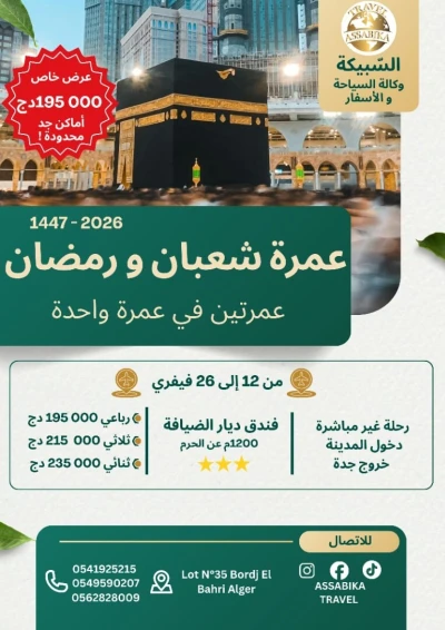 حدث لا يُفوّت… عمرة بطعم رمضان وبسعر أسطوري! ✨ تخيّل أن تبدأ رمضان في أطهر بقاع الأرض، وتختم شعبان بين ا�