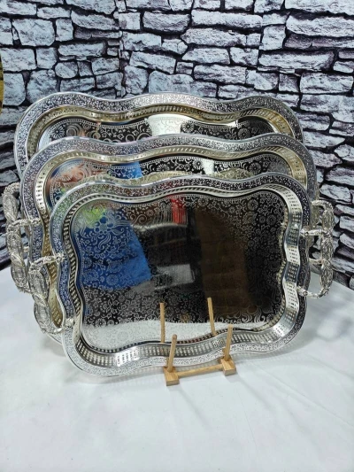 السلام عليكم حبيباتي نشاله تكونو كامل بخير ☺️😍 ✨ Plateaux Argent Carré – 3 قطع MH80 ✨ فخامة الفضة ✨ في تصميم مربّ�