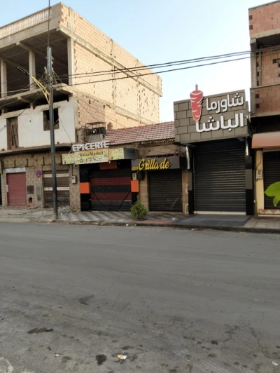 بيع محلات تجارية في شارع أحمد زبانة (طريق معسكر) قريب من ملعب 24 فبراير بجانب الحماية المذنية مقابل مع