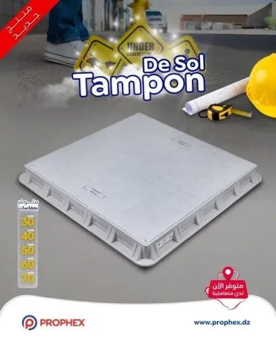 المنتج هو Tampon de Sol من علامة PROPHEX، وهو غطاء أرضي (regard cover) يُستخدم لغلق وحماية فتحات الصرف الصحي، غرف التفتي�
