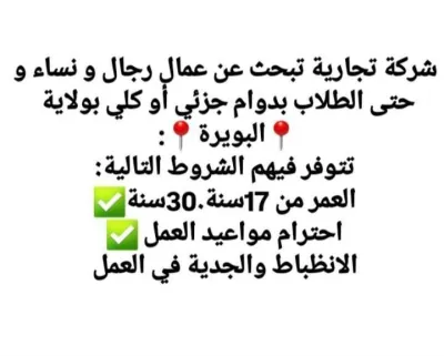 # فرصة عمل في شركة تجارية #Offre_demploi #Travail شركة تجارية تبحث عن موظفين جدد! إذا كنت مهتماً بالانضمام إلينا وا