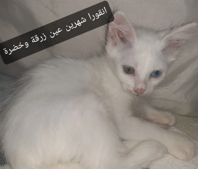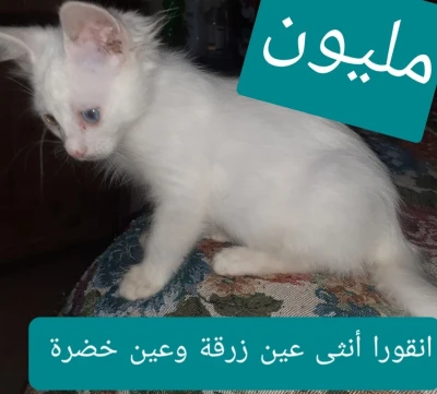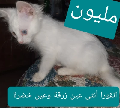 قطة صغيرة نوع انقورا عمرها شهرين عين زرقة وعين خضرة قطة صغيرة نوع شيرازي عمرها شهرين ياكلو كلش يعرفو يقض�