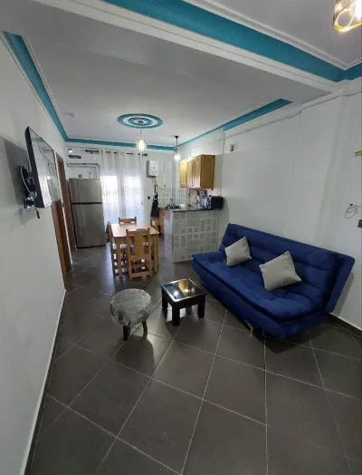 السلام عليكم، شقة للكراء في فترة العطلة الصيفية، متكونة من غرفتين و صالون، مهيأة بجميع مستلزمات الراحة: