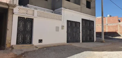 منزل بتحصيص شريط لزهر يتكون من طابق ارضي به مرإب كبير +مراب صغير خاص بالسيارة قاعة جلوس .2غرف بهو مطبخ حما�