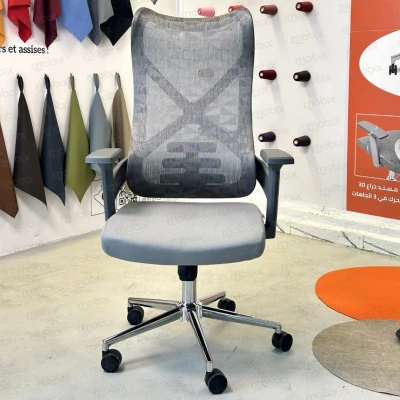 Chaise Onda – Structure Grise – Maille Ergonomique & Confort 🔹 Maille Résistante : dossier en filet pour une excellente aération et durabilité. 🔹 Soutien Lombaire Ergonomique