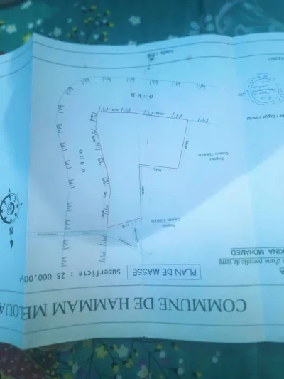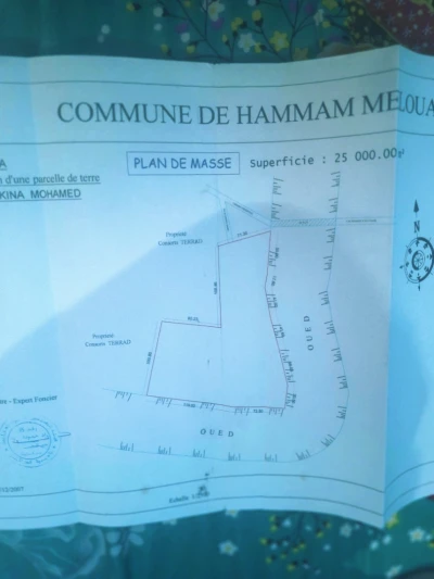 منطقة سياحية ارض مسطحة الهدوء التام في طرف الطريق وعلى والجه الاخر على 210 m واجهة الواد حمام ملوان منطقة خ