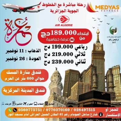برنامج عمرة نوفمبر رحلات مباشرة على مطار الجزائر دخول المدينة و خروج مكة •البرنامج الأول فندق ديوان أج