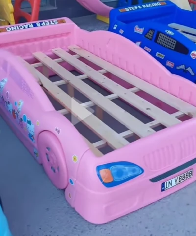 سرير سيارة لون وردي روسومات لولو كيتي الكمية 2حبات العمر يصلح من اربع سنوات حتى 20سنة يتحمل حمولة ثقيلة ح�
