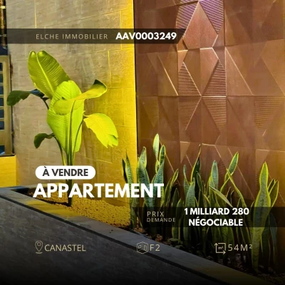 Réf : AAV0003249 Appartement F2 à vendre à Canastel, Oran ✨ Situé dans une résidence sécurisée avec ascenseur, société de gestion et aires de jeux ✨ Façade unique avec balcon