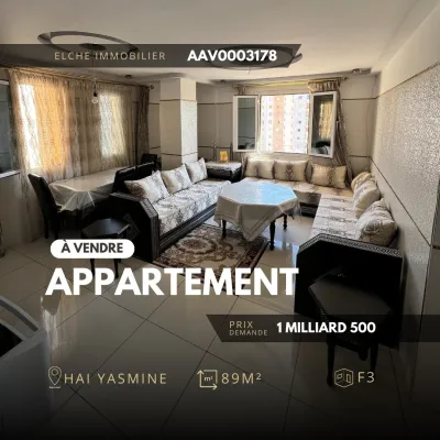 📌 Réf : AAV0003178 🏢 Appartement F3 à vendre – Haï El Yasmine, Oran Un bel appartement d’une superficie de 89 m², situé dans un immeuble sécurisé avec ascenseur et socié