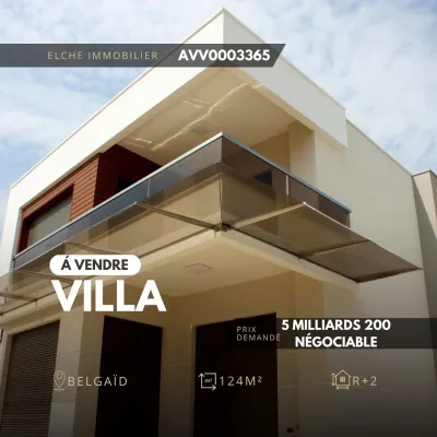 📌 Réf : AVV0003365 🏡 Villa R+2 à vendre – Belgaïd, Bir El Djir, Oran Une villa R+2 est proposée à la vente à Belgaïd – Bir El Djir, Oran, située dans une résidence ferm�