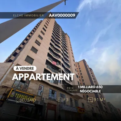 🔶 Réf : AAV0000232 🏡 À VENDRE ET À LOUER – Appartement F3 📍 Situé à Belgaïd – Oran, dans une résidence sécurisée et bien entretenue, dotée d’un ascenseur, d’un a