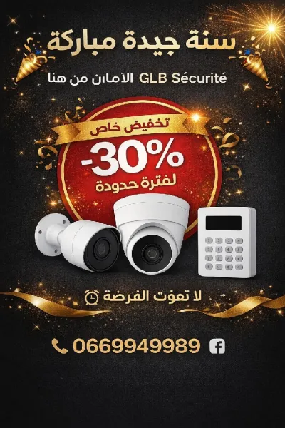 🎉 سنة جديدة… أمان أكثر مع GLB Sécurité! 🔥 تخفيض 30% على كاميرات المراقبة وأنظمة الإنذار 🛠️ تركيب احترافي وض