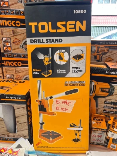 حامل المثقاب TOLSEN 10500 مصمم للاستخدام مع المثاقب لتوفير ثبات ودقة أثناء العمل. يتميز القاعدة المتينة المزو