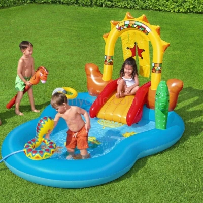 مسبح قابل للنفخ أصلي وأنيق للأطفال على الطراز الغربي. امنح أطفالك شعور رعاة البقر. يحتوي مركز المياه ال�