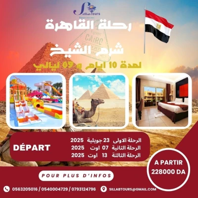 ✨ استعد لرحلة العمر إلى أرض الفراعنة! 🇪🇬 مع وكالة SILLAB TOURS سافر في جولة منظمة إلى مصر واكتشف جمالها وتار�