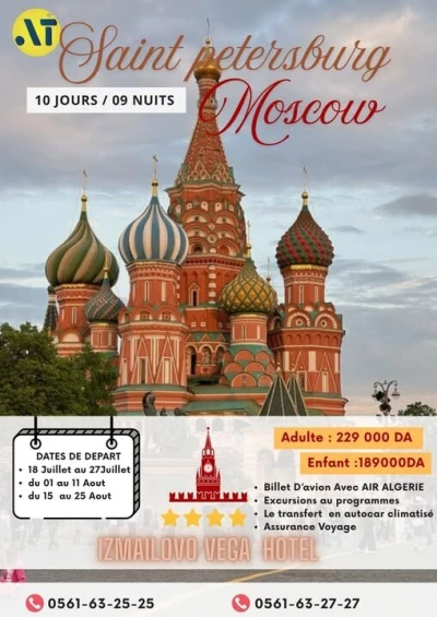 ➖️𝙥͟𝙧͟𝙤͟𝙜͟𝙧͟𝙖͟𝙢͟𝙢͟𝙚͟ ͟:͟ 🔸Vol Direct avec 𝐀𝐢𝐫 𝐀𝐥𝐠𝐞𝐫𝐢𝐞✈️. 🔸𝟎𝟑 Nuitées à Moscow en Logement & Petit