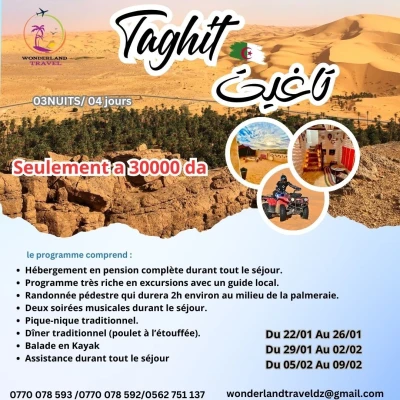 TIMIMOUNE L'OASIS ROUGE SEJOUR DE 05JOURS & 04 NUITS L’offre comprend : • Vol air Algérie • Transfert Aller/Retour. • Hé