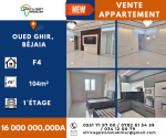 📌 Référence : 203704 – Vente Appartement F4 – Oued Ghir (Béjaïa) Opération : Vente Type de bien : Appartement Type : F4 Surface : 104 m² Étage : 1ᵉʳ étage (R+1) Adresse : O