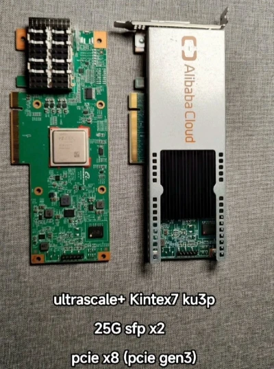 alibaba accelerator card FPGA xilinx Kintex UltraScale+ ku3p This is an Alibaba Cloud Field-Programmable Gate Array (FPGA) acceleration card. It is a PCIe card designed for data center wo