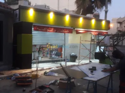 - revétment de façade aluco bond: à partir de 6500da - faux bois à partir de 7500da - mur rideaux -enseigne lumineuse- panneaux publicitaire -logo de marque -lettre en boîtier etc.nou