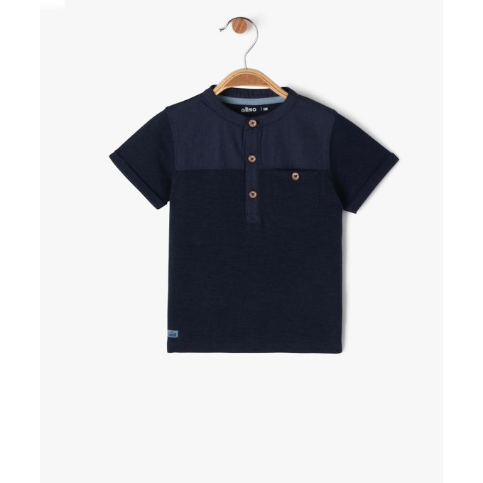 Sortez des sentiers battus et offrez à votre enfant ce tee-shirt bébé garçon en maille nid d'abeille et chic ! Le tee-shirt présente un col tunisien 3 boutons, des revers cousus sur le
